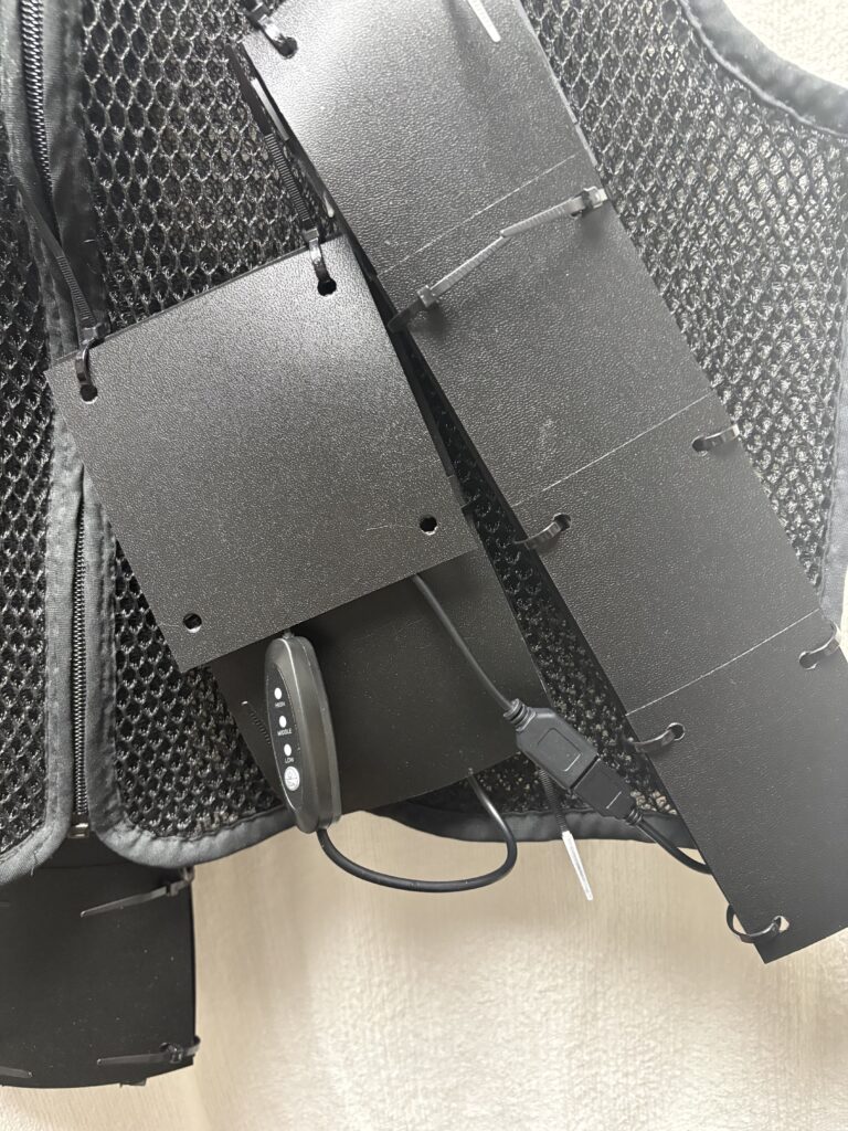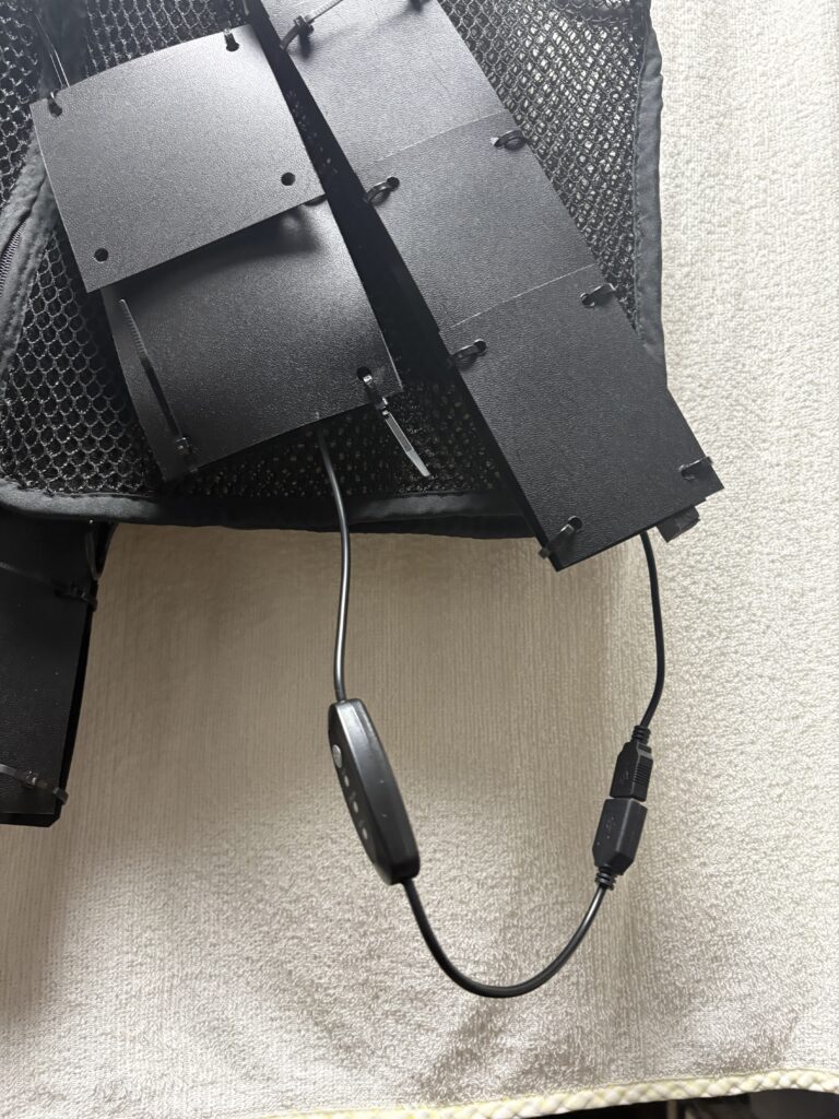 ぶらぶらしてると邪魔なので未使用時はバッテリーポーチの蓋にあるマジックテープで挟み込んでいます。